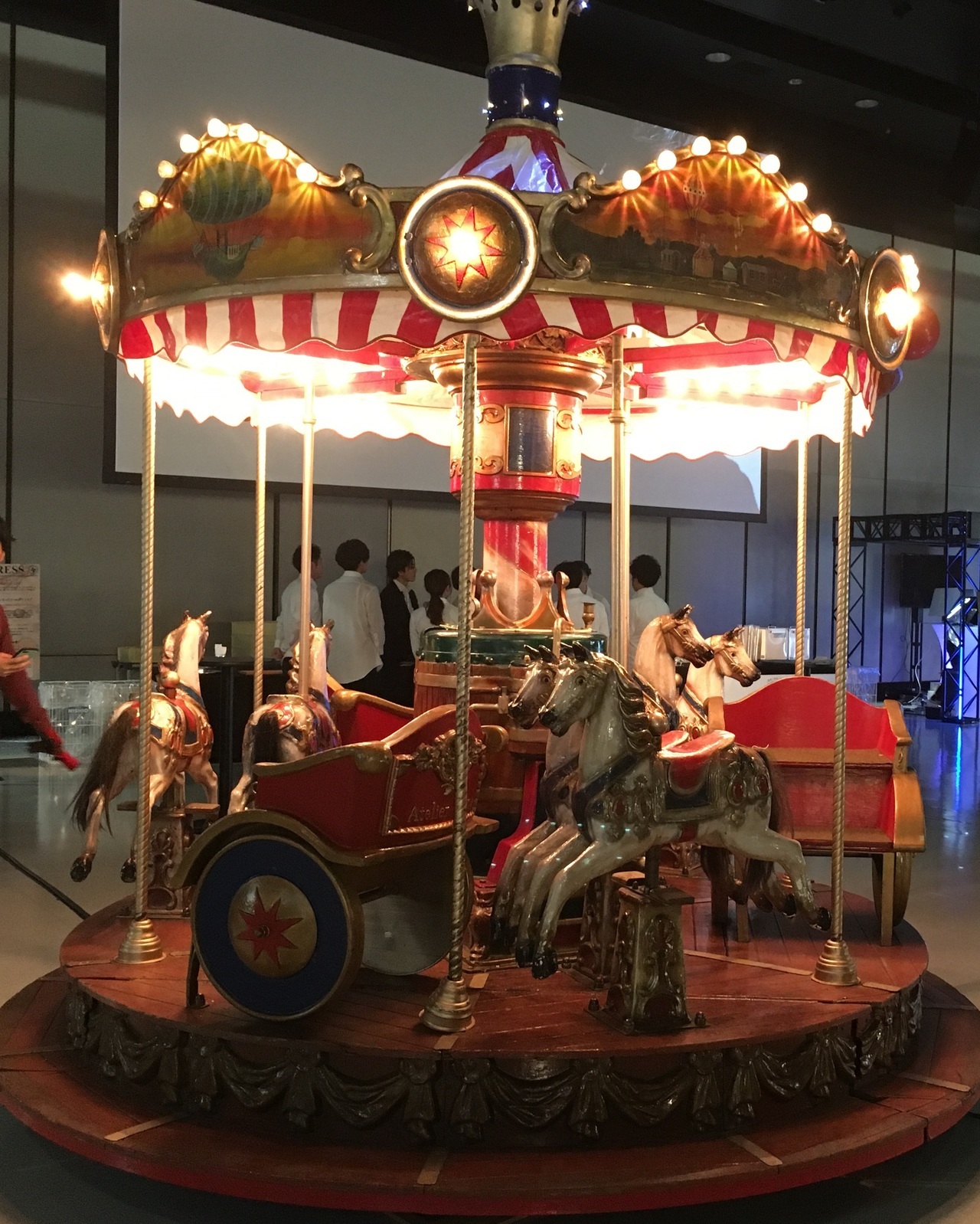 現地では雨天の場合も楽しめるようにと大型のテントが設置されており、その中にメリーゴーランドを設置しました。